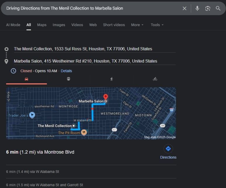 Driving Directions from The Menil Collection to Marbella Salon
